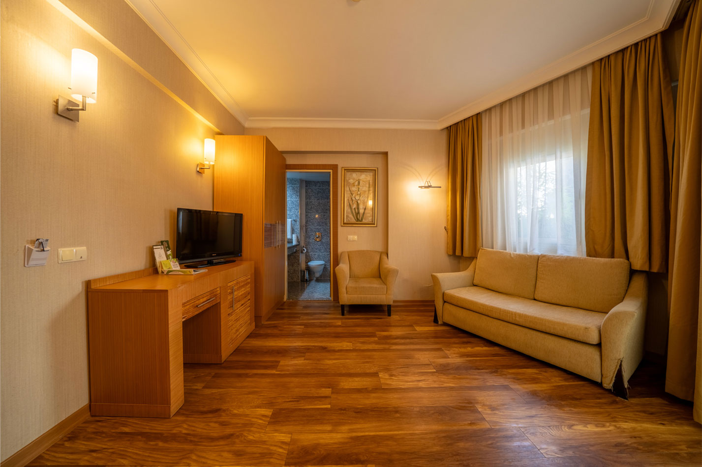 Family Rooms are for 4-5 people and comprise a separate bedroom and sitting room: two inter-connected rooms with door in-between. Bedroom features one french or two twin beds but sitting room has a sofa bed. These rooms are ideal for couples and families with children, the ultimate choice for the perfect family holiday.